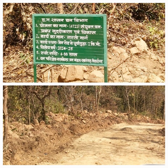 सारंगढ। सारंगढ़ वनमंडल के अधिकारियो के कारनामो की फेरहिस्त लगातार बढ़ रहे है। नया जिला बना सारंगढ़ में वन मंडल सारंगढ़ सोने की अंड़े देने वाली मुर्गी बन गया है। यहा पर किया जाने वाला निमार्ण कार्य मे भ्रष्टाचार को छुपाने के लिये अधिकारियो ने नया हथकंड़ा अपनाया है।निर्माण कार्य स्थल पर अनिवार्य रूप से प्रदर्शित होने वाली सूचना बोर्ड को लगाकर फोटो खिंचवाया जाता है और महज 24 घंटे के अंदर की बोर्ड को उखड़वा दिया जाता है। अब इसे लापरवारही कहें या भ्रष्टाचार पर डालने वाला पर्दाप्रथा ? यह तो वन विभाग के अधिकारी ही बता पायेगें। गोमर्डा अभ्यारण्य के क्षेत्र सारंगढ़-बरमकेला मुख्यमार्ग में मल्दा ब के आगे बरमकेला मुड़ान के पास वन विभाग के द्वारा संयुक्त वन प्रबंध व विकास के अर्न्तगत गश्ती मार्ग का निमार्ण गत दिनो कराया गया। इस निमार्ण कार्य को मेन रोड़ से धुर्वागढ़ तक 2 किलोमीटर लंबा बनाया गया है तथा इसे अनुमानित लागत 6 लाख रूपये मे बनाया गया है। वन परिेक्षेत्र बरमकेला के अधिकारियो के द्वारा निर्मित किया गया । इस रोड़ का निमार्ण को महज 2 दिन मे पूरा बना दिया गया। जेसीबी मशीन से पेड़ो को काटकर तथा पहाड़ो और जंगल की मिट्टी को समतल करके 2 किलोमीटर लंबी इस रोड़ का निमार्ण कर दिया गया। साथ ही इस निमार्ण कार्य को लेकर कोई सवाल ही ना खड़े हो इसको सोचकर इस निमार्ण के स्थल के पास ही सूचना बोर्ड को लगाया गया। किन्तु जिस दिन बैरियर को यहा पर लगाया गया उसी दिन उस सूचना बोर्ड को उखाड़कर ले जाया गया। मेन रोड़ पर किया गया निमार्ण कार्य और उसके लिये लगाया गया सूचना बोर्ड को ही वन परिक्षेत्र बरमकेला के अधिकारी यदि 24 घंटे के अंदर की उखाड़ दे रहे है तो सोच सकते है कि जंगल के भीतर होने वाले निमार्ण कार्यो की स्थिति क्या होगी।