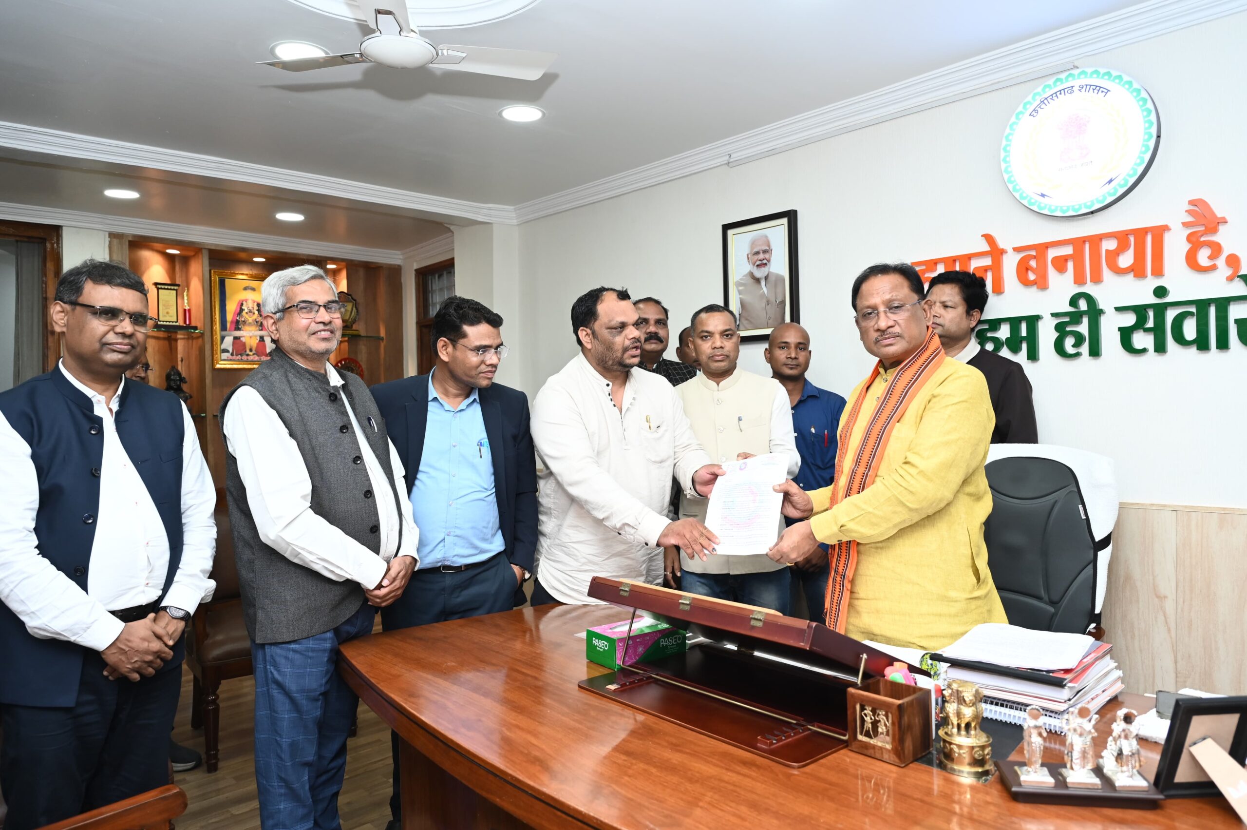 एन.एच.एम कर्मचारियों द्वारा मुख्यमंत्री से भेंट कर ज्ञापन सौंपा गया था।