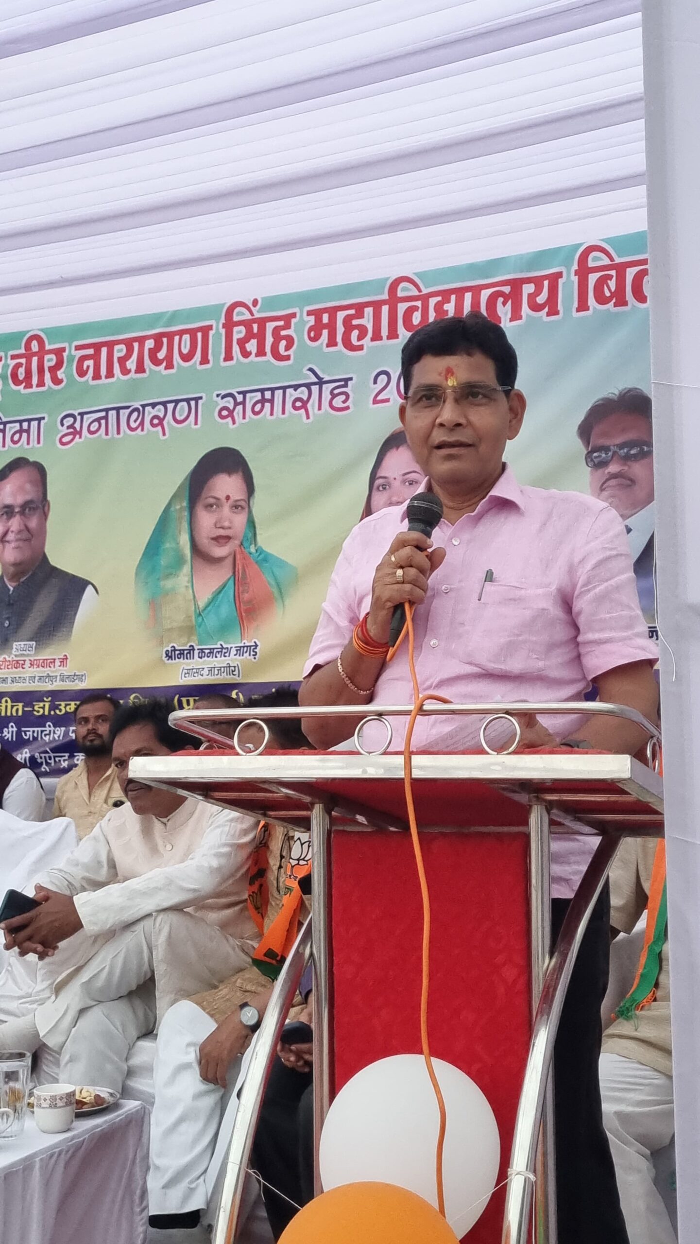 उच्च शिक्षा मंत्री टंकराम वर्मा ने बिलाईगढ़ के शहीद वीर नारायण सिंह कॉलेज में वीरनारायण सिंह की प्रतिमा का अनावरण किया बलिदानी क्रांतिकारी वीरनारायण सिंह के गौरव की हुई गूंज