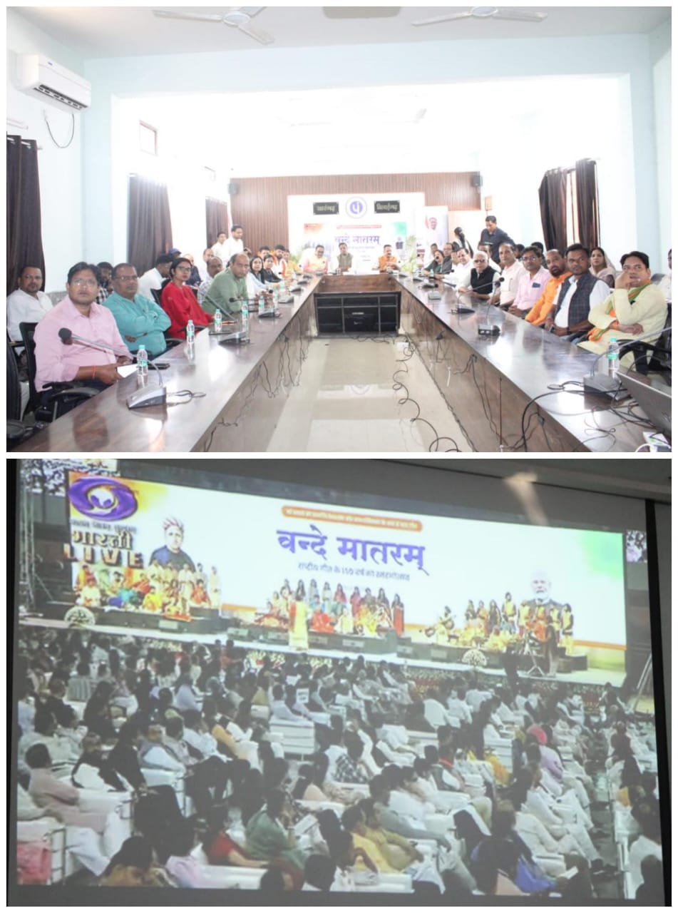 अतिथि जगन्नाथ पाणीग्राही ने कहा कि सम्पूर्ण वन्दे मातरम् गीत में हिन्दू देवी देवताओं का नाम था। अंग्रेजो ने मोहम्मद अली जिन्ना को भड़काकर राष्ट्रीय गीत से हिंदू देवी देवताओं के नाम को अलग कराकर राष्ट्रीय गीत को संक्षिप्त किया गया। अतिथि संजय भूषण पांडेय ने कहा कि अंग्रेजो ने हमारे देश के लोगों के साथ मिलकर हिन्दू धर्म, भारतीय धर्म और संस्कृति को कम करने के लिए कार्य किया, आज भारतीय धर्म और संस्कृति को बढ़ाएं। कलेक्टर डॉ कन्नौजे ने कहा कि वन्दे मातरम एक मन्त्र ह, जिसके सुनने से उत्साह और ऊर्जा का संचार होता है। जनप्रतिनिधि, अधिकारी कर्मचारी हम सब अपने दायित्वों का पालन कर विकसित भारत 2047 के लक्ष्य को पूरा करने में देश को सहयोग करें। इस अवसर पर जिले के अधिकारीगण उपस्थित थे।