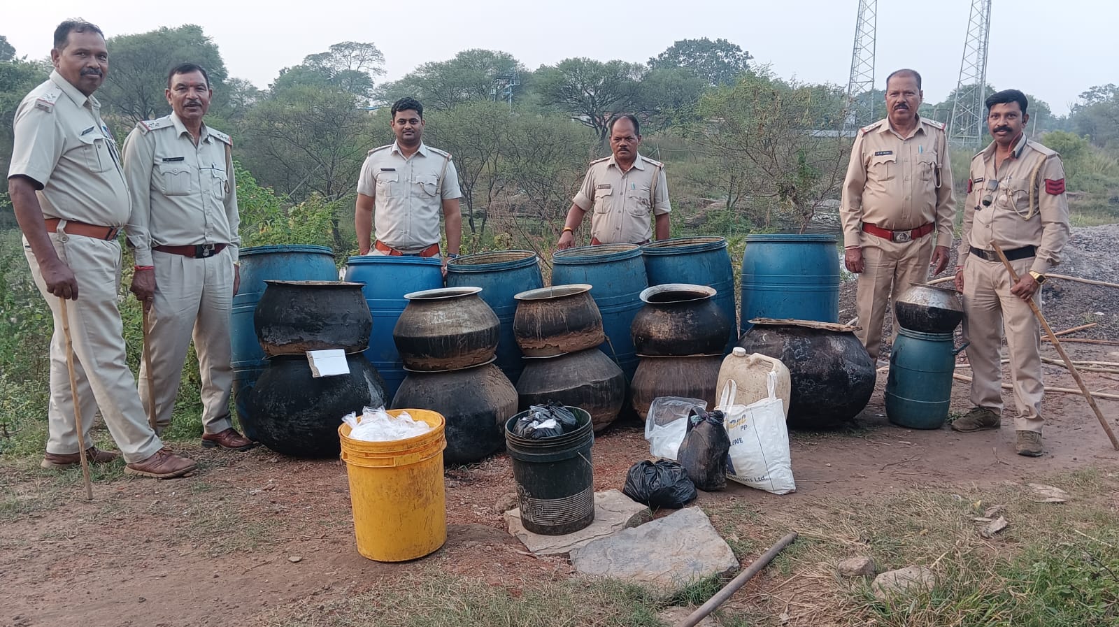 सूचना की पुष्टि होने पर टीम के साथ बताए गए स्थान नाले के पास पहुंचे वहा पर मदिरा शराब बनाने हेतु भट्टी के साथ मदिरा पैक करने हेतु पॉलीथिन के पाउच, पॉलीथिन की छोटी छोटी 200 नग झिल्लियों प्रत्येक में भरी 200-200 मिलीलीटर ,02 नग सफेद रंग के जरीकेन में भरा 20-20 लीटर एवं 01 नीले रंग के जरीकेन में भरा 30 लीटर इस तरह कुल 110 लीटर कच्ची महुआ शराब तथा 07 नग बड़े नीले रंग के ड्रम में भरे महुआ शराब बनाने के लिए सड़ाकर बनाया गया महुआ लाहन प्रत्येक में भरा 200-200 किलोग्राम जिसकी कुल मात्रा लगभग 1400 किलोग्राम है, को जब्त किया गया। कच्ची महुआ शराब को कब्जा आबकारी लिया गया एवम विधिवत रूप से महुआ लाहन का नष्टीकरण किया गया है और अज्ञात आरोपी के विरुद्ध छत्तीसगढ़ आबकारी अधिनियम धारा 34(1)(क) (च)34(2) का , प्रकरण कायम कर विवेचना में लिया गया है आरोपियों की पतासाजी की जा रही है।