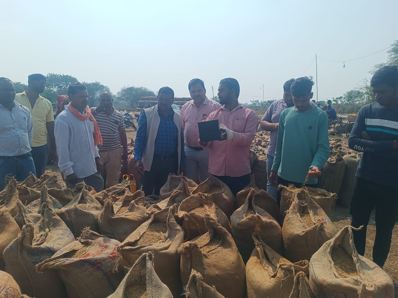 सारंगढ़ बिलाईगढ़, / कलेक्टर डॉ संजय कन्नौजे एवं अनुविभागीय अधिकारी सारंगढ़ के निर्देश पर तहसीलदार शनि पैकरा द्वारा कोसीर धान उपार्जन केंद्र में आकस्मिक निरीक्षण किया गया। निरीक्षण के दौरान धान की नमी, आवश्यक साफ सफाई एवं हमालों को सही तौल करने का निर्देश दिया गया। तहसीलदार ने सभी कृषकों को अपील किया कि सभी अपना धान साफ सफाई के साथ उपार्जन केंद्र में लाए। धान फड़ में जांच के समय किसान रमेश पिता गौतम निवासी सिंघनपुर 55 बोरी, राजेश्वरी पति नरोत्तम105 बोरी , मालिकराम पिता फ़िरत राम कोसीर 40 बोरी को आवश्यक सफाई करने पश्चात ही खरीदी करने का निर्देश दिया गया। धान के संबंध में पंचनामा बनाया गया जिसे उच्चाधिकारी को प्रेषित किया गया। मौका स्थल पर नोडल अधिकारी कृष्णकुमार साहू , आनंदराम सिदार, फड़प्रभारी हमाल मुकर्रदम आदि कृषक उपस्थित रहे।
