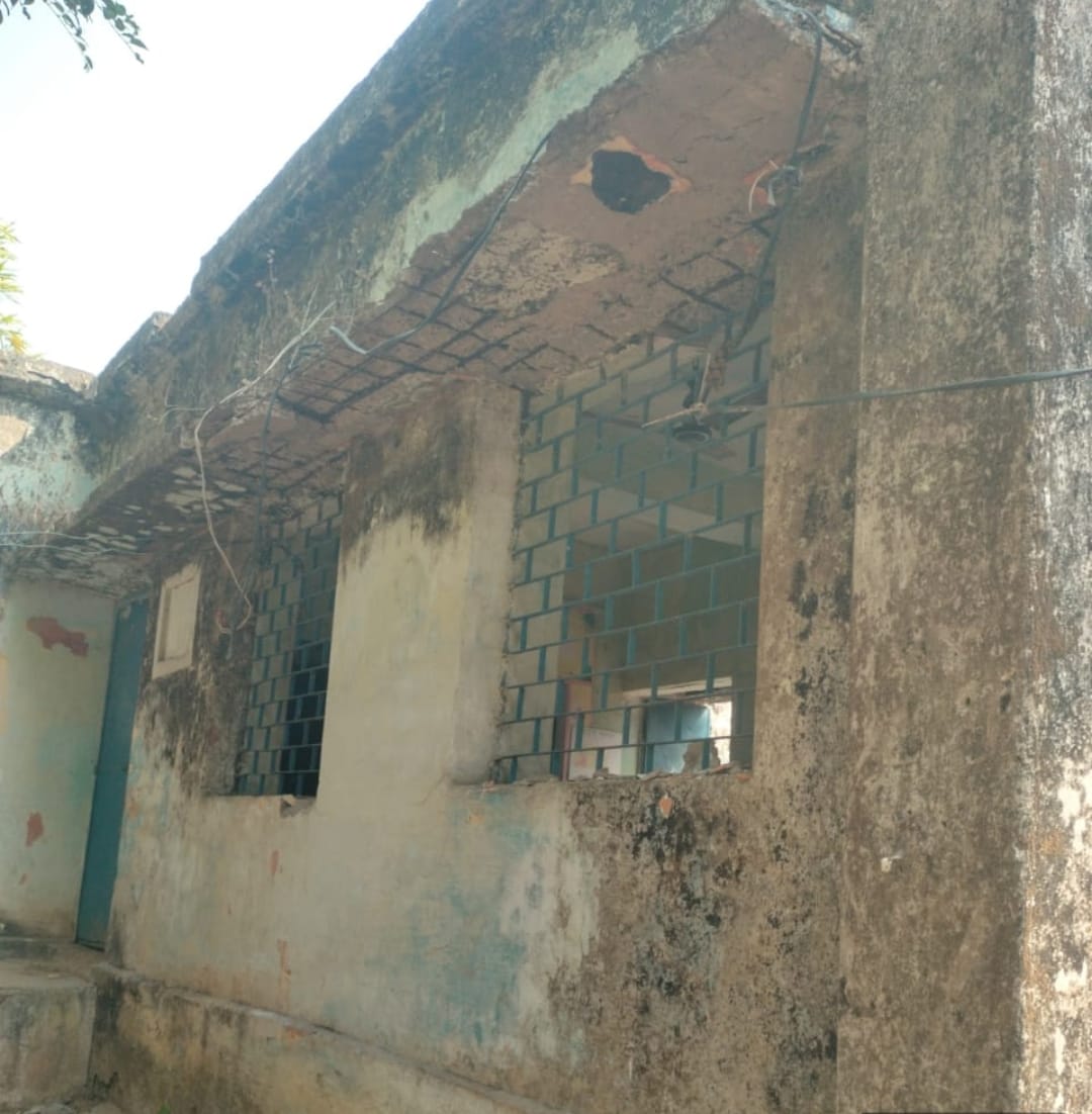 चार दिन पहले स्कूल की खिड़की का छज्जा अचानक भरभराकर नीचे गिर गया। किस्मत अच्छी थी कि उस समय बच्चे कक्षा के अंदर नहीं थे, वरना यह हादसा एक बड़े त्रासदी में बदल सकता था। गाँव वाले इसे ईश्वर की कृपा मान रहे हैं।
