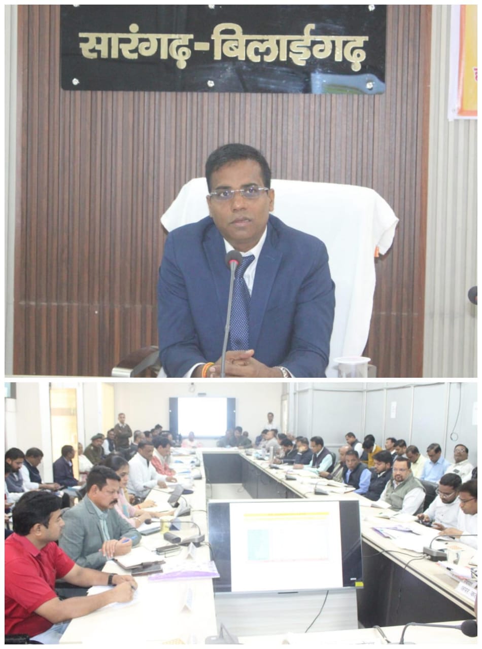 सारंगढ़-बिलाईगढ़, /कलेक्टर डॉ संजय कन्नौजे की अध्यक्षता और जिले के अधिकारियों की उपस्थिति में कलेक्टोरेट सभाकक्ष में समय सीमा की बैठक में जिले के प्रगतिरत कार्यों का समीक्षा किया गया। बैठक में सीएम जनदर्शन, कलेक्टर जनदर्शन, पीजीएन पोर्टल और अन्य माध्यमों से प्राप्त मांग और शिकायतों का निराकरण प्राथमिकता से करने के निर्देश दिए। इसके साथ साथ धान खरीदी, सड़क निर्माण एवं मरम्मत, पीएम सूर्य घर मुफ्त बिजली घर योजना, जाति प्रमाण पत्र, अपार आईडी, आयुष्मान, आयुष्मान वय वंदन, पीएम आवास, धरती आबा, जल जीवन मिशन, अमृत मिशन, पीएमश्री स्कूलों का मरम्मत, प्राधिकरणों के निर्माण आदि की प्रगति का कलेक्टर द्वारा समीक्षा किया गया। कलेक्टर ने भारत निर्वाचन आयोग के मतदाता सूची विशेष गहन पुनरीक्षण (एसआईआर) कार्य में अनकलेक्टेड मतदाताओं के घरों में बीएलओ को घर-घर जाकर सत्यापन करने के निर्देश दिए।