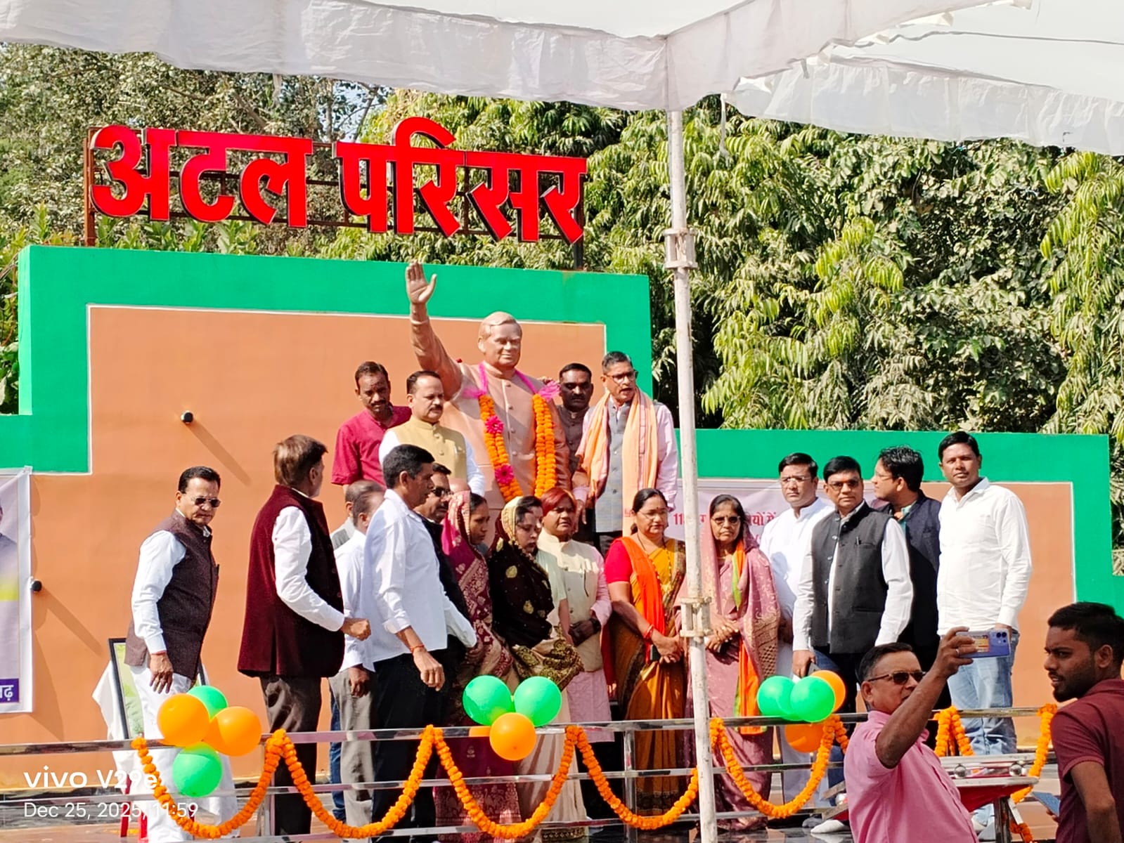 *पूर्व पीएम वाजपेयी के जयंती पर नगरपालिका सारंगढ़ ने मनाया सुशासन दिवस* सारंगढ़ बिलाईगढ़, 25 दिसंबर 2025/छत्तीसगढ़, झारखंड और उत्तराखंड राज्य निर्माता पूर्व प्रधानमंत्री अटल बिहारी वाजपेयी की जयंती के अवसर पर नगरपालिका परिषद सारंगढ़ द्वारा अटल परिसर में सुशासन दिवस समारोह का आयोजन किया गया। इस दौरान अतिथियों ने पूर्व पीएम वाजपेयी के आदमकद प्रतिमा में माल्यार्पण करते हुए अपनी श्रद्धा व्यक्त कीं। साथ ही इस दौरान छत्तीसगढ़ के 115 नगरीय निकायों में अटल परिसर का वर्चुअल लोकार्पण मुख्यमंत्री विष्णुदेव साय, नगरीय प्रशासन विकास मंत्री अरूण साव की उपस्थिति में किया गया। समारोह को संबोधित करते हुए जिला पंचायत अध्यक्ष संजय भूषण पांडेय ने कहा कि वाजपेयी जी ने छत्तीसगढ़ राज्य का निर्माण किया है। उनका निर्णय मानवीय मूल्यों पर आधारित था। प्रधानमंत्री ग्राम सड़क योजना उनकी देन है और पंचायती राज में उन्होंने मार्ग प्रशस्त किया। उन्होंने ग्रामीण भारत को मुख्य धारा में जोड़े। हम अपने जिले, नगर, गांव, जन-जन तक शासन की योजनाओं को पहुंचाने में सहयोग करें। समारोह में जिला पंचायत अध्यक्ष संजय भूषण पांडेय, सदस्य शिवकुमारी साहू, पूर्व विधायक कामदा जोल्हे, सत्ताधारी दल के जिला अध्यक्ष ज्योति पटेल, अजय गोपाल, वरिष्ठ नागरिक केके बेहार, पत्रकारगण भरत अग्रवाल, यशवंत ठाकुर, ओंकार केशरवानी, प्रशांत प्रधान, रायगढ़ सांसद प्रतिनिधि अरूण गुडडू यादव, दुर्गा ठाकुर, वेदराम जांगड़े, मनोज जायसवाल, अविनाश पुरी गोस्वामी, राजेश जायसवाल, देवेन्द्र रात्रे, जय बानी, मयूरेश केशरवानी, सीएमओ ज्ञानपुंज कुलमित्र, सब इंजीनियर उत्तम कंवर, सहायक ग्रेड 2 रोशन यादव सहित बड़ी संख्या में नगरपालिका के कर्मचारीगण उपस्थित थे।