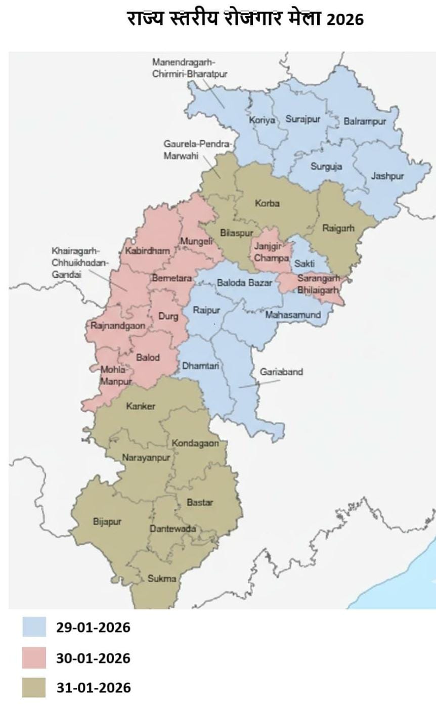 रायपुर में 29, 30 एवं 31 जनवरी को होगा राज्य स्तरीय रोजगार मेला साक्षात्कार हेतु सारंगढ़ बिलाईगढ़ जिले के 1513 आवेदकों का चयन