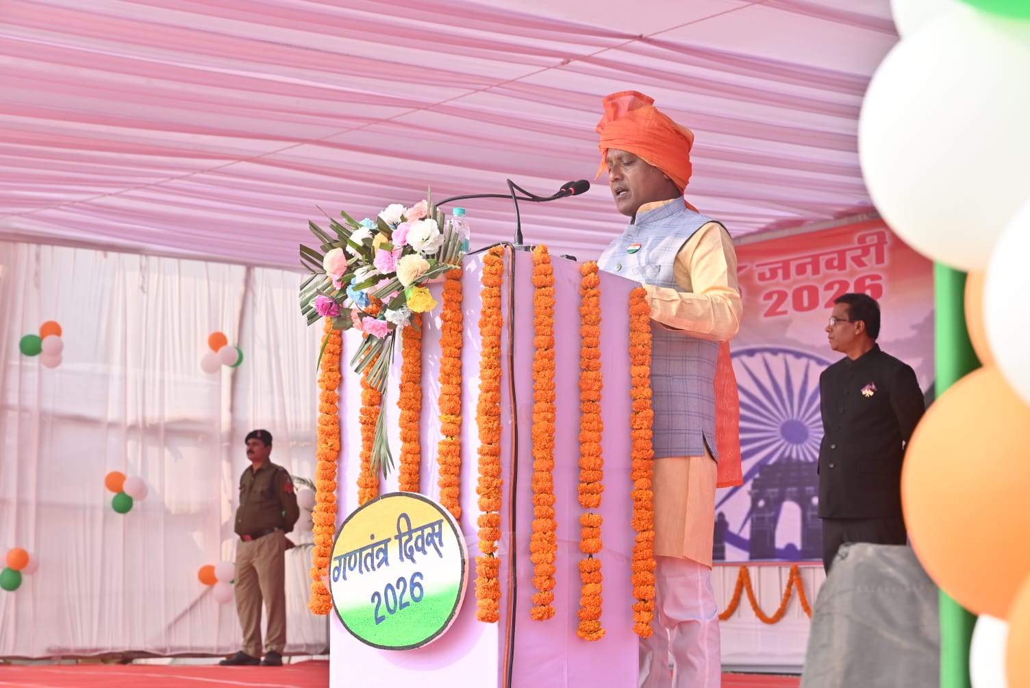 मुख्य अतिथि राठिया ने परेड निरीक्षण कर परेड की सलामी ली। इस अवसर पर मुख्य अतिथि को पुलिस जवान, कई स्कूलों के एनसीसी स्काउट, रेडक्रॉस, एनएसएस के बालक-बालिकाओ द्वारा मार्च पास्ट कर सलामी दी गई। सांसद राठिया ने छत्तीसगढ़ के मुख्यमंत्री का जनता के नाम संदेश का वाचन किया। मंच पर कलेक्टर डॉ संजय कन्नौजे, पुलिस अधीक्षक आन्जनेय वार्ष्णेय मौजूद थे। सांसद ने राहर्ष के प्रतीक राष्ट्रीय ध्वज के तीन रंग से रंगे गुब्बारे को आकाश में छोड़े। इसके बाद उन्होंने शहीद परिवारों के परिजनों को शाल श्रीफल भेंट कर नमन किये। स्कूली बच्चों ने देशभक्ति से भरे सामूहिक नृत्य की शानदार प्रस्तुति दी। कार्यक्रम के अंत में कई विभागों ने योजनाओं के जीवंत झांकी का प्रदर्शन किया। सभी कार्यक्रमों के विजेताओं और उत्कृष्ट कार्य करने वालों को शील्ड और प्रशस्ति पत्र भेंटकर सम्मानित किया गया। इस अवसर पर विधायक सारंगढ़ उतरी जांगड़े, जिला पंचायत अध्यक्ष संजय भूषण पाण्डेय, सदस्य लता लक्ष्मे, शिवकुमारी साहू, पूर्व विधायक छबिलाल रात्रे, केराबाई मनहर, कामदा जोल्हे, सांसद प्रतिनिधि अरुण गुड्डू, सत्ताधारी दल के जिला अध्यक्ष ज्योति पटेल, सुभाष जालान, जिले के गणमान्य नागरिक, अधिकारी कर्मचारी, पत्रकार, पालक सहित नन्हे मुन्हे बच्चे उपस्थित थे। कार्यक्रम में शानदार उद्घोषक का कार्य तोषी गुप्ता एवं सुनील कुमार भोई ने की।