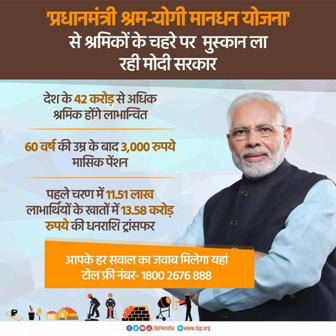 पीएम श्रम-योगी मानधन एवं एनपीएस योजना से होगा श्रमिकों को लाभ 15 फरवरी तक शहरी क्षेत्र में और 16 फरवरी से 15 मार्च तक ग्रामीण क्षेत्र में होंगे शिविर