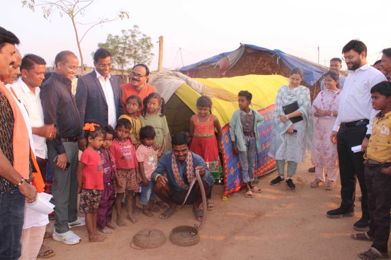 सपेरा बस्ती में कलेक्टर डॉ. संजय कन्नौजे का दोबारा दौरा कलेक्टर ने सपेरा बस्ती के 40 परिवारों के पीएम आवास निर्माण का किया निरीक्षण कलेक्टर ने बुजुर्ग महिला बक्सा बाई और बच्चों से की बात