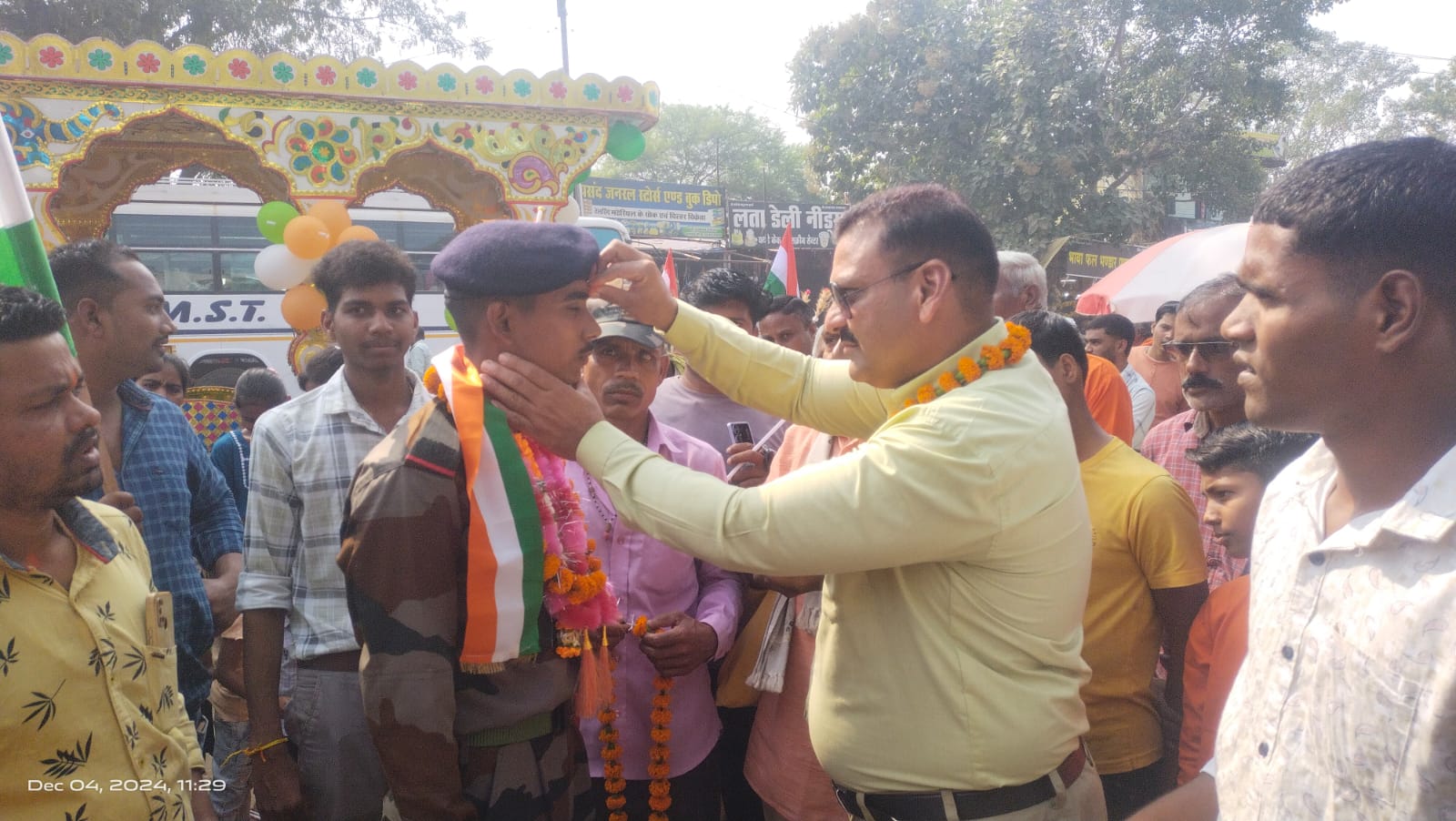 प्रज्ञा इंस्टिट्यूट भटगांव के डायरेक्टर एवं युवा पत्रकार के. पी. पटेल ने पुष्पमाला पहनाकर शीतल का स्वागत किया और कहा कि शीतल साहू हमारे इंस्टिट्यूट मे 10 वीं क्लास मे कोचिंग किया था और होनहार विद्यार्थी था जो बाद मे अपने मेहनत और ट्रेनिंग के बाद अग्निवीर मे चयनित होकर अपने साथ इंस्टिट्यूट का भी नाम रोशन किया । इस भव्य स्वागत के लिये शीतल साहू ने सभी का आभार प्रगट करते हुये कहा कि मेरा अग्निवीर मे चयन होना मेरे मा बाप और मेरी मेहनत का फल है और अग्निवीर की तैयारी कराने मे हमारे कोच नंदकुमार साहू जी का बहुत बड़ा योगदान है जो कई महीनों व वर्षों से हमें निःशुल्क प्रशिक्षण दिया. यह प्रशिक्षण मेरे लिये वरदान से कम नहीं है और मै अग्निवीर पोस्ट मे जाकर अपने देश के लिये अंतिम सांस तक सेवा करूँगा । ग्राम बंदारी से आये सभी लोगों ने शीतल साहू का भव्य स्वागत करते हुये उन्हें रथ मे सह सम्मान बिठाकर, बाइक रैली व बाजे गाजे के साथ जय जवान, जय किसान का नारा लगाते हुये बंदारी से भटगांव तक रथ के साथ बाइक रैली निकाला गया और ग्राम बंदारी पंहुचा जहाँ ग्राम वासियो ने तिलक लगाकर पुष्प वर्षा के साथ स्वागत किया ।