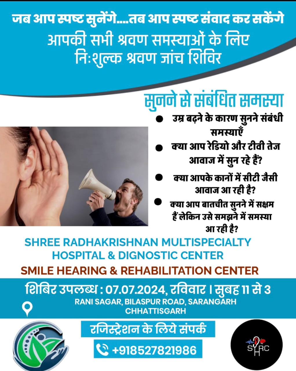 जब आप स्पष्ट सुनेंगे…. तब आप स्पष्ट संवाद कर सकेंगे आपकी सभी श्रवण समस्याओं के लिए निःशुल्क श्रवण जांच शिविर