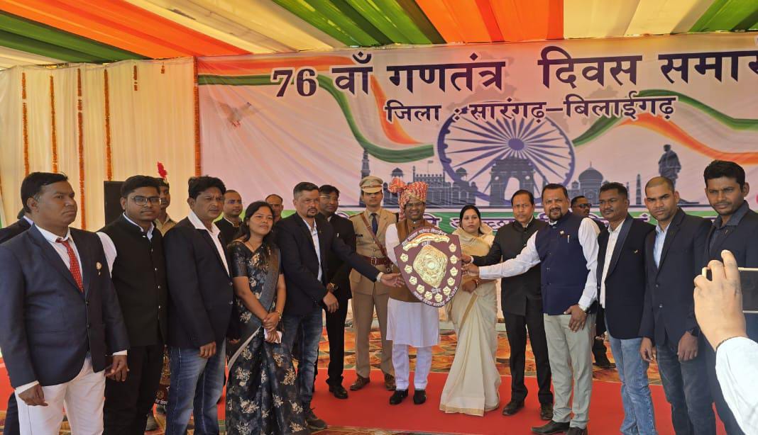 सारंगढ बिलाईगढ, /76 वॉ गणतंत्र दिवस समारोह कृषि विभाग जिला सारंगढ बिलाईगढ में जिला, अनुविभाग तथा विकासखण्ड स्तर पर हर्षोउल्लास के साथ मनाया गया, जिसमें जिला स्तर पर श्री आशुतोष श्रीवास्तव, उप संचालक कृषि द्वारा ध्वजारोहण किया गया। जिला प्रशासन द्वारा गणतंत्र दिवस समारोह माननीय मुख्य अतिथि श्री प्रणव कुमार मरपच्ची की उपस्थिति में खेलभांठा मैदान सारंगढ़ में आयोजन किया गया। कार्यक्रम में विभिन्न सांस्कृतिक कार्यक्रम एवं विभागीय झांकियों का प्रदर्शन किया गया। छ.ग. शासन से प्राप्त थीम के अनुक्रम में कृषि विभाग द्वारा ड्रोन से उर्वरक छिड़काव एवं पी.एम. किसान सम्मान निधि से आर्थिक लाभ विषय पर आधारित झांकी का प्रदर्शन किया गया, जिसमें कृषि विभाग को जिला प्रशासन द्वारा द्वितीय पुरस्कार से सम्मानित किया गया, साथ ही कार्यालयीन अधिकारी, कर्मचारी श्री नकुल राम मालाकार, ग्रामीण कृषि विस्तार अधिकारी को उनके उत्कृष्ट कार्य के लिए प्रशस्ति-पत्र एवं प्रतीक चिन्ह से सम्मानित किया गया।